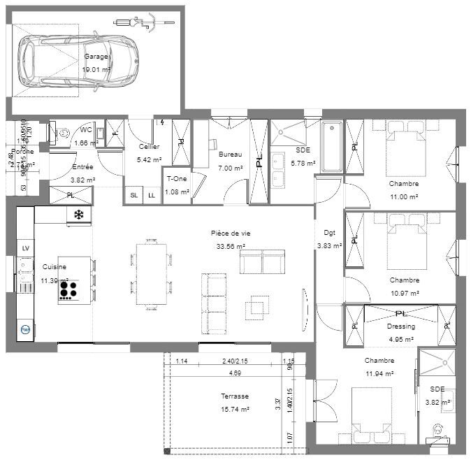 Sur la commune de Vielle-Saint-Girons, à quelques kilomètres de l’océan et de ses belles plages, à deux pas des commerces et services, Maison d’en France Sud-Ouest vous propose de construire cette maison neuve sur le terrain de 624 m² que nous vous y avons déniché. Cette belle maison en L de près de 116² habitables propose, côté jour, une pièce de vie de près de 45 m² qui seront ajustables à vos envies. Cuisine moderne, salon séjour ouvert sur une terrasse couverte qui prolongera votre espace de vie de plus de 15 m². Accès direct au cellier et au garage. Le côté nuit se compose de deux chambres avec placards intégrés et d’une salle de bains avec douche, baignoire et vasque, et d’une suite parentale et sa salle d’eau privative. Idéal pour accueillir une famille de deux, voire trois enfants. Doté d’un réglage pièce par pièce, le système de chauffage suggéré vous assurera le plus grand confort dans le respect des nouvelles normes environnementales, tout en vous assurant de très substantielles économies, tant en chauffage qu’en rafraichissement. Maison prête à décorer, ne vous resterons que les peintures et la cuisine. Votre talent fera le reste ! Plan, disposition, système de chauffage, tout reste entièrement personnalisable selon vos envies. Terrain viabilisé de 624 m², selon disponibilité de notre partenaire foncier. Non mandaté pour la vente du terrain. Maison + terrain + frais de notaire + terrassement + raccordements à partir de 335 000 euros. Dommages-ouvrage et garanties de parfait achèvement et de livraison à prix et délais convenus incluses. Pour plus de renseignements, n’hésitez pas à joindre Katherine, votre conseillère Maisons d’en France Sud-Ouest. Référence : KF-VSG-898.