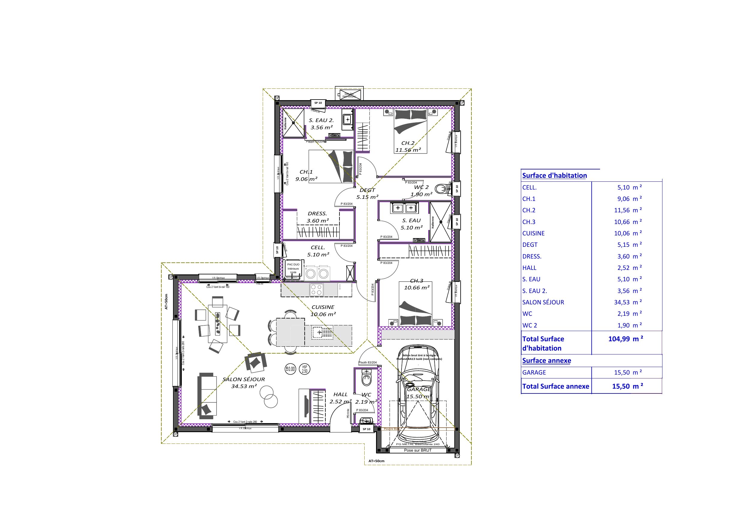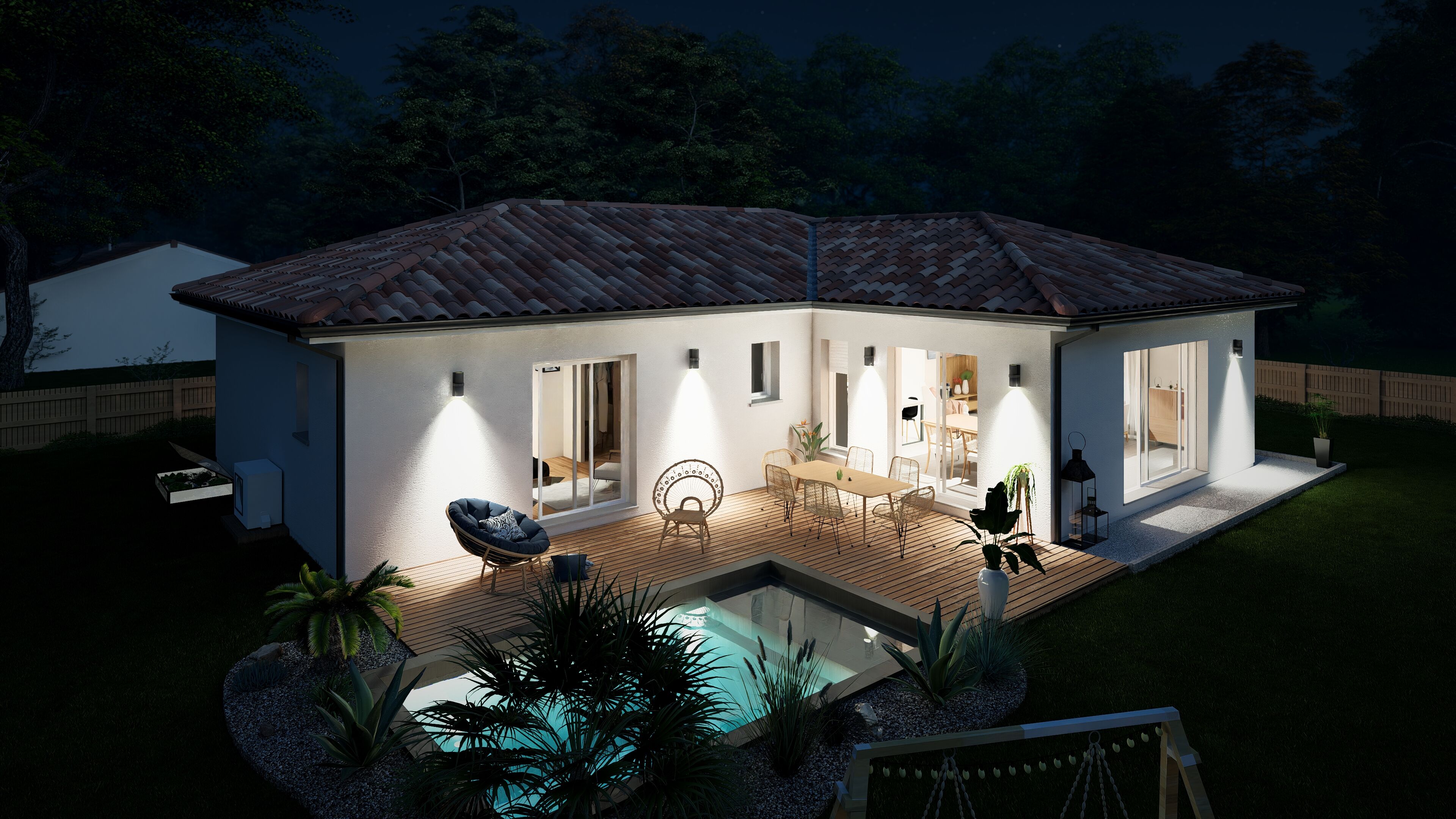 NEWS : Le prêt à taux 0 de l’état revient en Avril : prenez rdv en agence pour en savoir plus ! Maisons d’en France vous propose ce beau projet de construction à Saint Magne sur un grand lot viabilisé de 850 m² au cœur d’un petit lotissement plein de charme. À seulement 40 min de Bordeaux et 30 minutes du bassin d’Arcachon, à 5 minutes des espaces naturels et des lacs d’Hostens, ce lotissement à tout pour plaire. La maison que nous proposons sur ce terrain est résolument moderne avec ses beaux volumes et son efficacité énergétique à la pointe. Elle dispose d’un espace de vie total de 105 m², avec un garage attenant, et se compose : – D’un espace jour proposant une spacieuse pièce de vie avec cuisine ouverte de 45 m² et un cellier. – D’un espace nuit composé de 3 chambres, dont 2 avec placards et 1 suite parentale avec dressing & salle d’eau indépendante. La maison possède les meilleures prestations : – Volets roulants électriques domotiques contrôlables depuis un tableau de commande dans la maison, ou son téléphone ; – Menuiseries et volets roulants tous en aluminium pour allier design, légèreté et robustesse. – Chauffage par plancher chauffant, alimenté par une pompe à chaleur, vous offrant des hivers avec les pieds bien au chaud ! Ce projet est une proposition afin d’explorer des possibilités. L’ensemble est entièrement modifiable selon vos souhaits : plan, prestations, mode de chauffage, revêtements, etc. Nous avons également d’autres lots que vous pouvez sélectionner pour que le terrain s’adapte parfaitement à votre maison et style de vie. Ce projet inclut : – La maison. – Le terrain. – La viabilisation. – Une Assurance Dommages Ouvrage. À noter : Les travaux de terrassement, les raccordements et les frais de notaire ne sont pas inclus. Pour plus d’informations et échanger autour de votre projet, contactez votre conseiller Samuel COLLARD au O6 70 08 48 05. Terrain proposé en collaboration avec notre partenaire foncier, sous réserve de disponibilité. Nous ne sommes pas mandatés pour la vente de ce terrain. Ref : SCO_STMA_25.