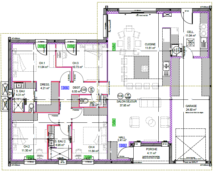 Maisons d’en France vous propose aujourd’hui un projet de construction à Castets, ville située à moins de 20 km des plages, et 30 minutes de Bayonne par l’autoroute ! La ville de Castets est pourvue de commerces et centres médicaux et culturels (grande surface, boulangeries délicieuses, centre médicalisé, cinéma, école. ). À noter, outre les prestations détaillées ci dessous, le projet comprend la dommage ouvrage, le cout des frais de notaire estimés ainsi qu’une une estimation approchante des raccordements indispensables au projet. Concernant la maison que nous vous proposons, une surface de 130 m² et un garage de 25 m² qui vous permettront de bénéficier de tout le confort nécessaire. La zone jour traversante d’environ 52 m² vous offrira une profondeur qui laissera libre à cours à votre imagination quant à l’aménagement de cette dernière. Un cellier de plus de 11 m² fera la jonction entre le garage et la cuisine et apportera une zone de rangement complémentaire. Côté nuit, 3 chambres seraient prévues + une suite parentale constituée d’un dressing et d’une salle d’eau confortables en plus de la salle d’eau commune. Le système de chauffage vous est proposé en gainable avec chauffage et climatisation ajustables pièce par pièce. Carrelage dans la zone jour inclus, centralisation électrique pour l’ensemble des volets roulants. La construction de votre maison respectera la RE 2020 ce qui lui permettra de bénéficier entre autre, d’une domotique dernier cri ainsi que d’une faible consommation d’énergie. À noter que ce plan reste une proposition et demeure pleinement adaptable selon vos envies ! Le prix comprend : – Terrain + maison – garantie d’achèvement et de livraison à prix et délais convenus incluse – DO incluse – Frais de notaire inclus – raccordements inclus – Estimation taxes PFAC et aménagement incluses – visuel non contractuel – Non mandaté pour réaliser la vente du terrain – Selon disponibilité de notre partenaire foncier – Les informations sur les risques auxquels ce bien est exposé sont disponibles dur le site Géorisques https://www.georisques.gouv.fr / Il restera à votre charge les touches finales, à savoir les parquets dans les chambres, la peinture, la cuisine et le portail. Pour toute information complémentaire, n’hésitez pas à contacter Ludwig MOLL, Conseiller habitat Maisons d’en France à Castets. LM2-CASTETS.